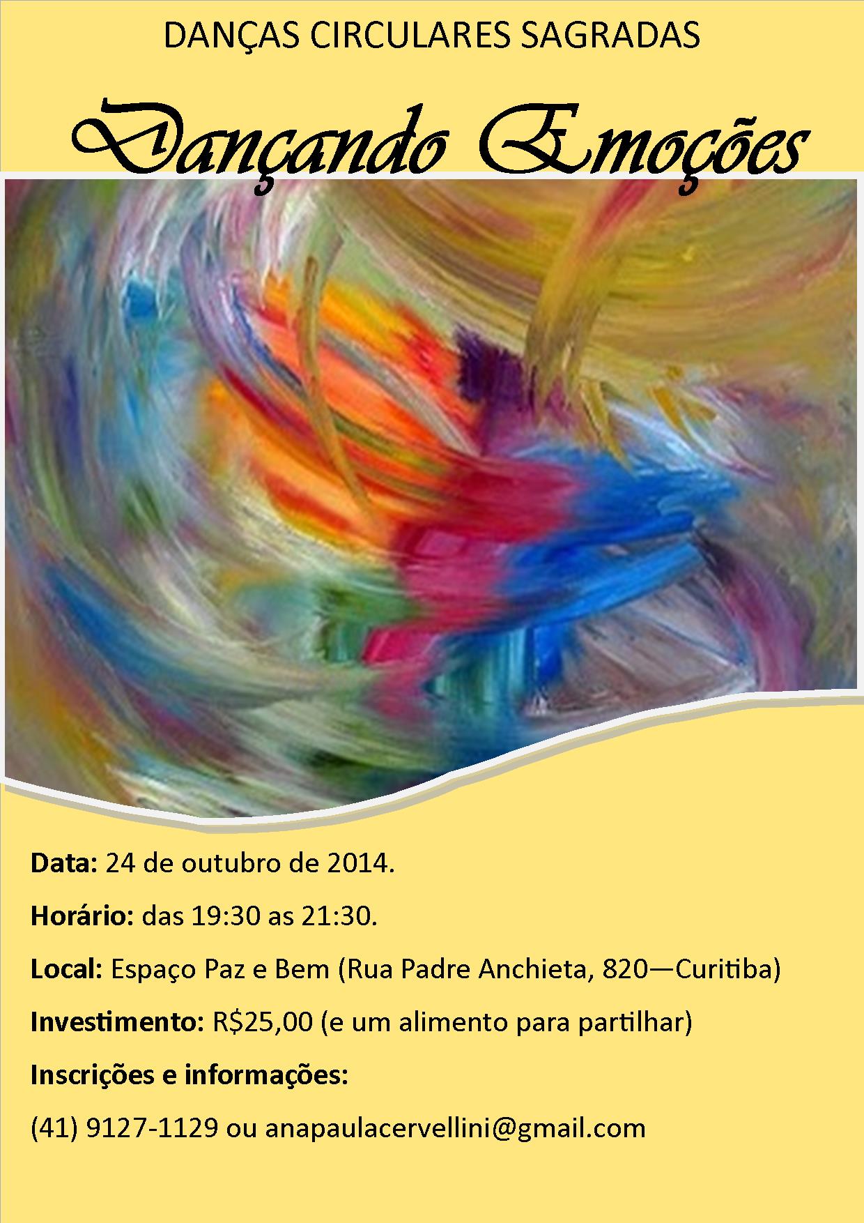 Nesta sexta-feira, dia 24, das 19:30 as 21:30, no Espaço Paz e Bem, teremos mais uma edição da vivência de Danças Circulares “Dançando Emoções“!